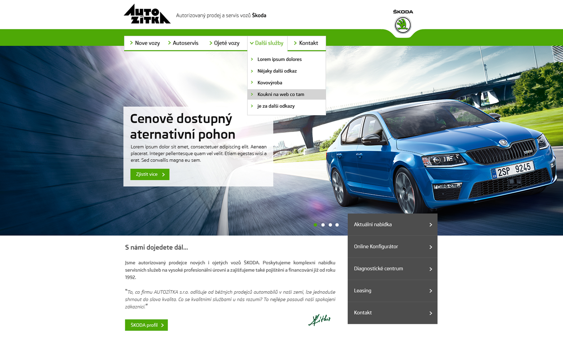 Auto Zítka je autorizovaný prodejce a servis. Ve všem, co dělají se chtějí přiblížit své značce. A mé zadání? Vytvořit elegantní “škodovácký” design.