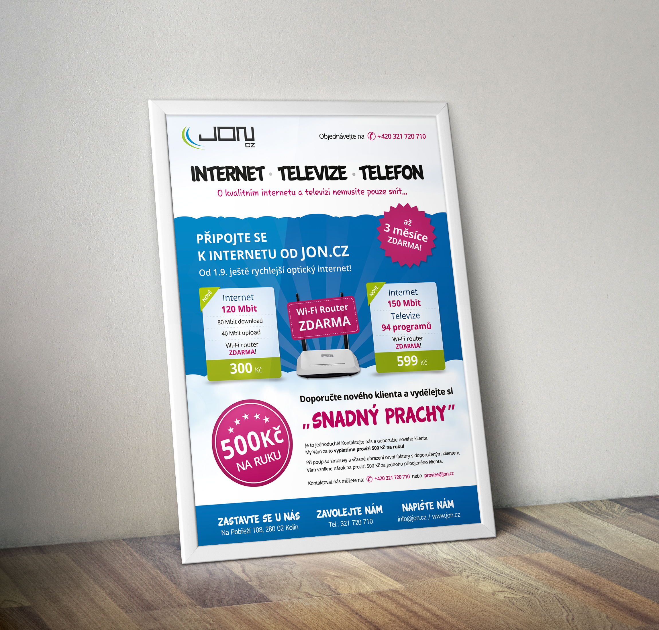 Oblíbený regionální poskytovatel telefonu, internetového připojení a televize. Mým zadáním bylo posílit jejich místní známost. Jonu vytvářím poutavé tiskoviny, kolem kterých neprojdete bez povšimnutí.